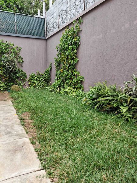 Cocina y jardín en la parte de atrás